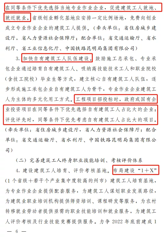 工(gōng)程項目招投标時(shí),政府或國有企業投資(zī)項目在同等條件下優先選擇自有建築工(gōng)人占比大(dà)的企業; 評優評先時(shí),同等條件下優先考慮自有建築工(gōng)人占比大(dà)的項目。 &nbs國了p;